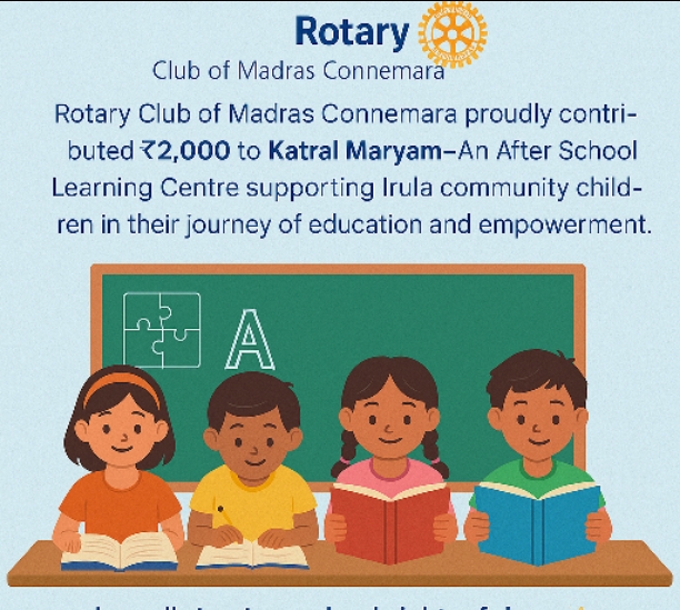 Rotary Club of Madras Connemara proudly contributed ?2,000 to Katra. . .