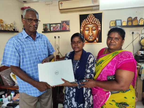 on behalf of our club, a Dell Laptop & Charges was handed over to t. . .